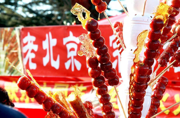 老北京的糖葫蘆特別養(yǎng)眼,個(gè)頭大、各式各樣、色彩紛呈,一口咬下去,滿口甘甜。不論是炎炎夏日,還是寒冷冬季,都給人一種清新之感,回味起來,欲罷不能。